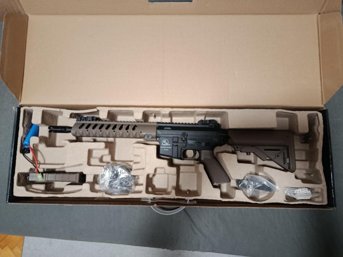 Eledó egy új állapotú Ar M 15 típusú elektromos airsoft összes gyári tartozékával,adok hozzá töltőt, egy 2000 mAh-ás Lipo akksit,maszkot,szemvédőt.