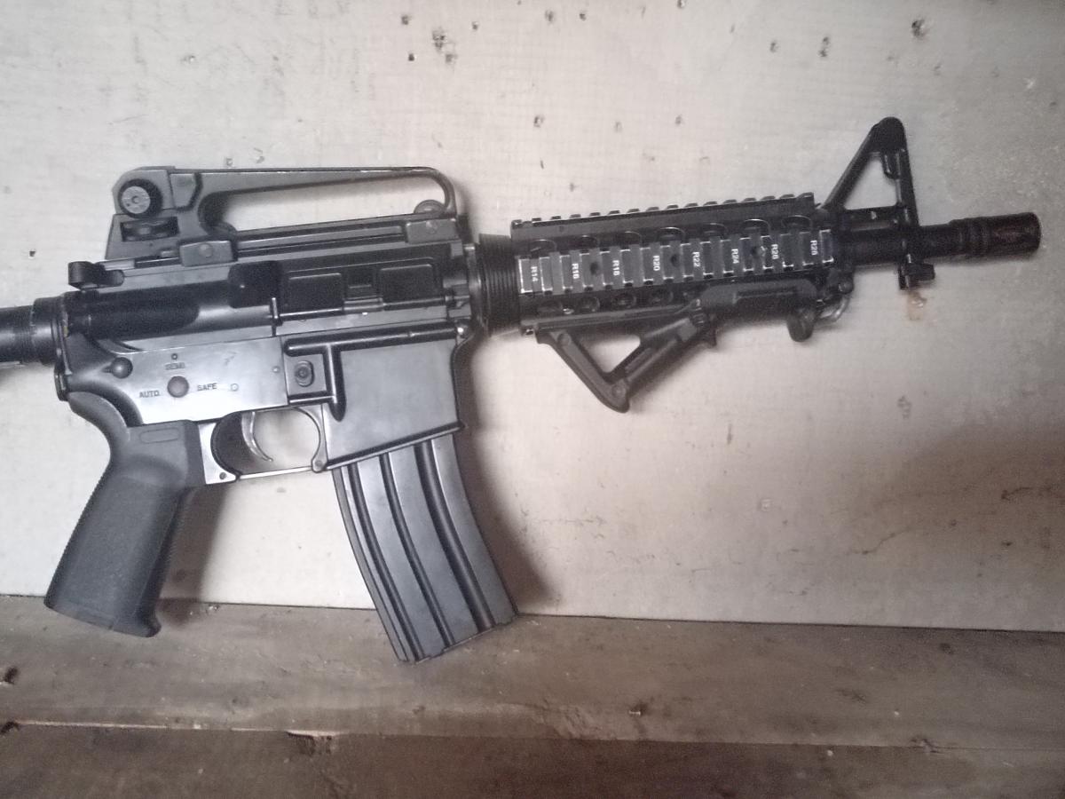 M4 fém előaggyal, T csatlakozóval, 1db hi cap tárral, előagyon markolat, kicsit kopott, maximum 10 12 játékon vett részt