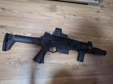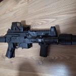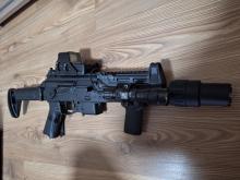 Üdv eladó We06 nem az ETU burst változat, csak sima fet van benne.(kevesebb a hibalehetőség)Így ahogy a képen látod, kivéve a fegyverlámpa!Azt az egyet nem adom.4 db tárral, első markolat, reddot, + az a nagy durung az elején :) , egy traceres hangtompító.Az is jár hozzá.Van benne egy Maple leaf gumi szilikonos.Piszkálva nagyon nem volt a belseje.Szépen teszi a dolgát.Aksit is adok hozzá!Ez így 95000ft(ebben a posta is benne van) ennyi kiegészítővel simán megér ennyit.Utánvét nincs!