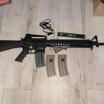 Elado M4a1 replika  soha nem volt játékon alig használt állapotban . 1 highcap tár 2db Midcap tár csere rugó ,akkumulátor 2600mha  töltö nincsen.
