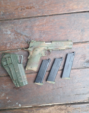 Szinte új, kb 20 tárat lőttem ki belőle. Szép lőkép, 25-30 méterre eltalál egy ember méretű célpontot kényelmesen. Ideális időben egy gáz töltéssel akár 2-2,5 tárat is tud menni. (Zöld Gáz)