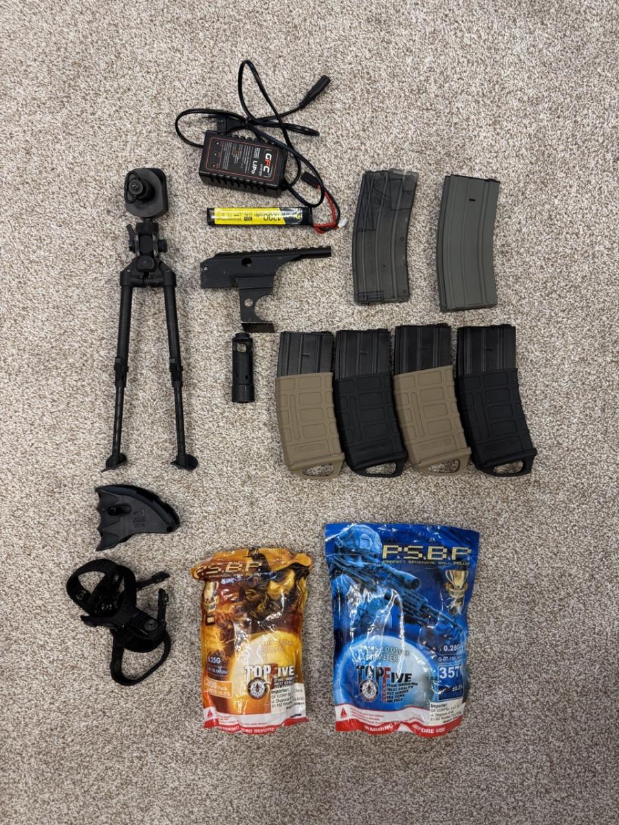 Kihasználatlanság miatt eladó a képeken látható komplett airsoft felszerelés és kiegészítői+ egyéb kiegésztők.