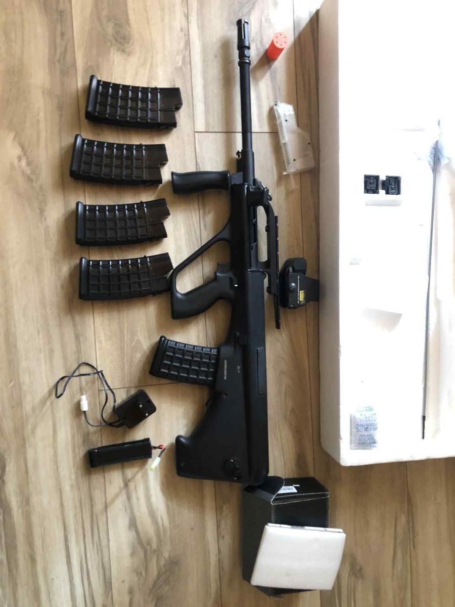eladó a képne látható felszereltség , Aug A1 annyi hibája van hogy a full autó mód nem működik , mellé jár egy irányzék , aksi + töltő , 1 db high cap tár ( 300bb) és 4 db low cap tár ( 45bb )