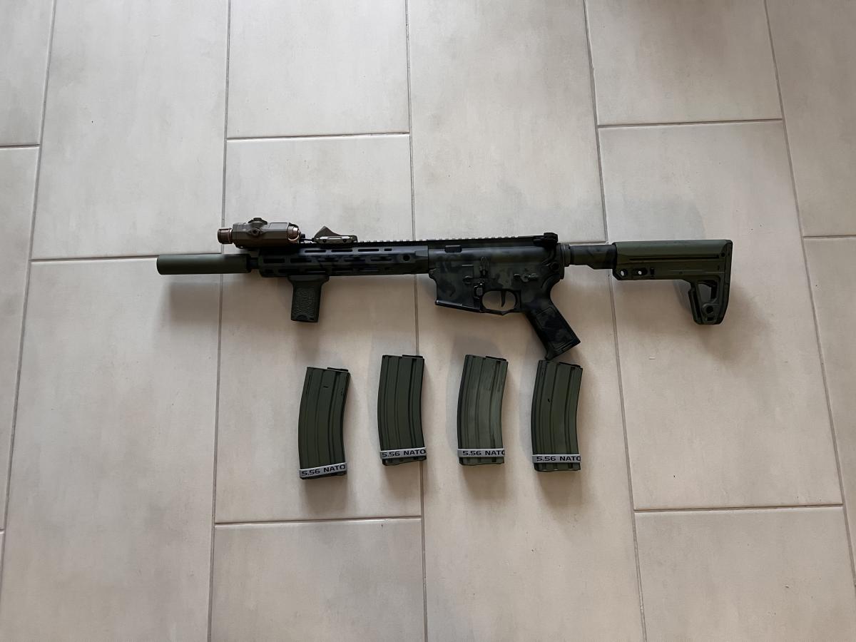 Eladó egy Double Eagle m906b replika. Pár játékot megjárt de nagyon jó állapotban van. Jár hozzá egy PEQ15 hozzá tartozó kapcsolóval illetve 4 darab midcap tár. Megbeszélés alapján egy 2x nagyítású optika .