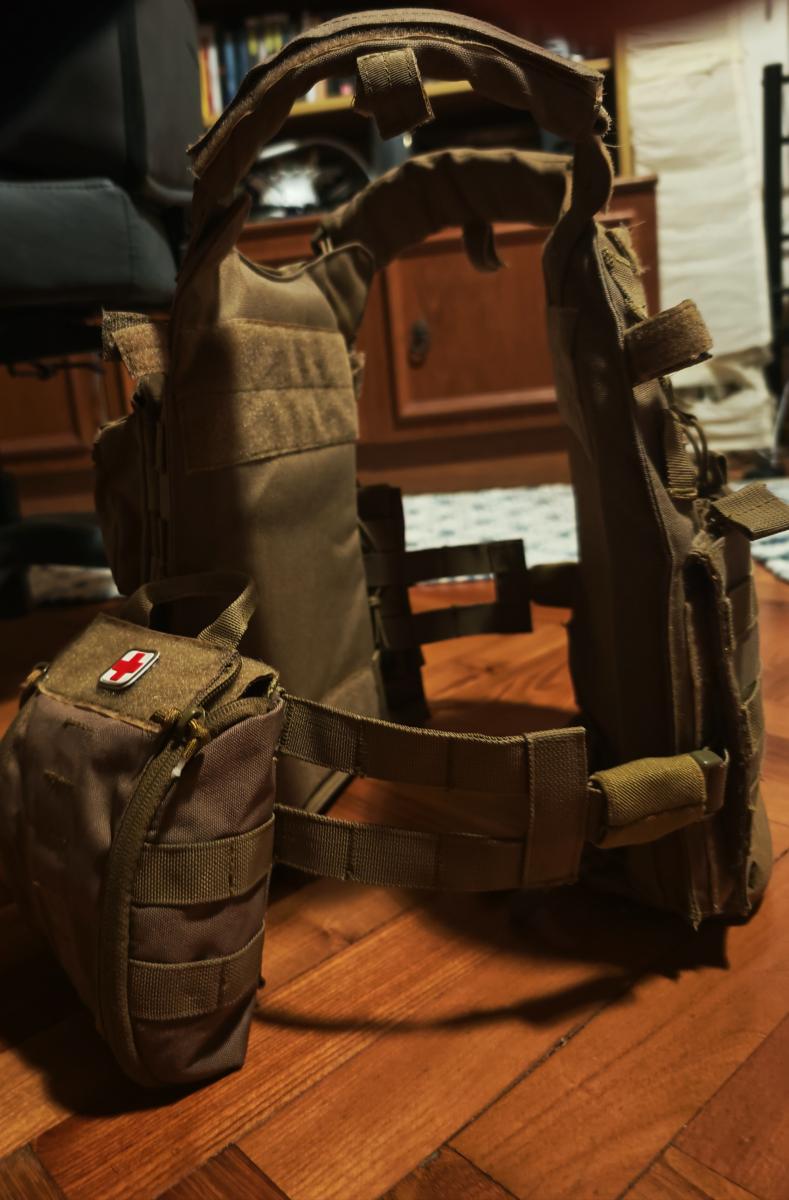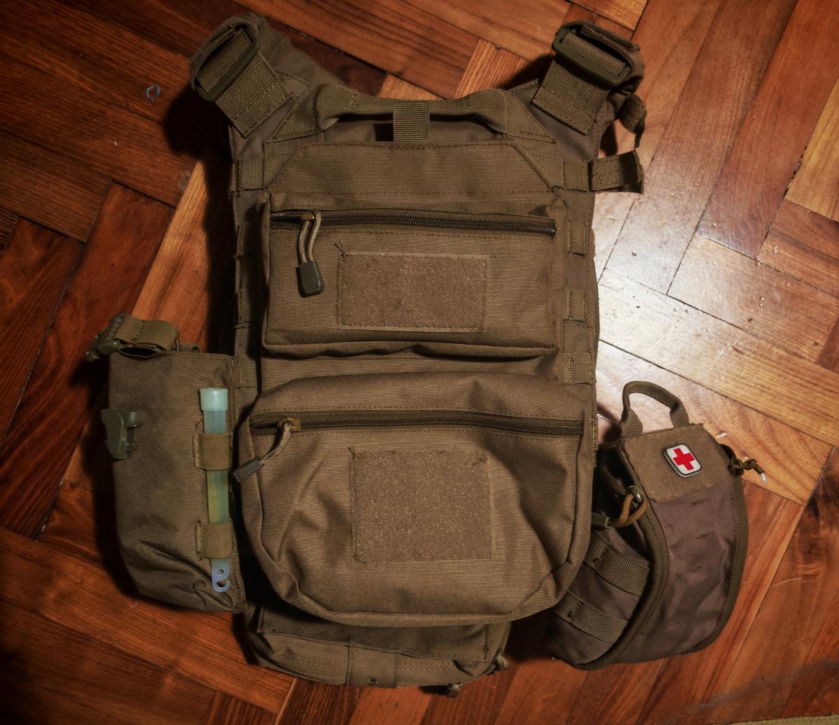 A mellényhez tartozik egy háti panel ivózsák hellyel.