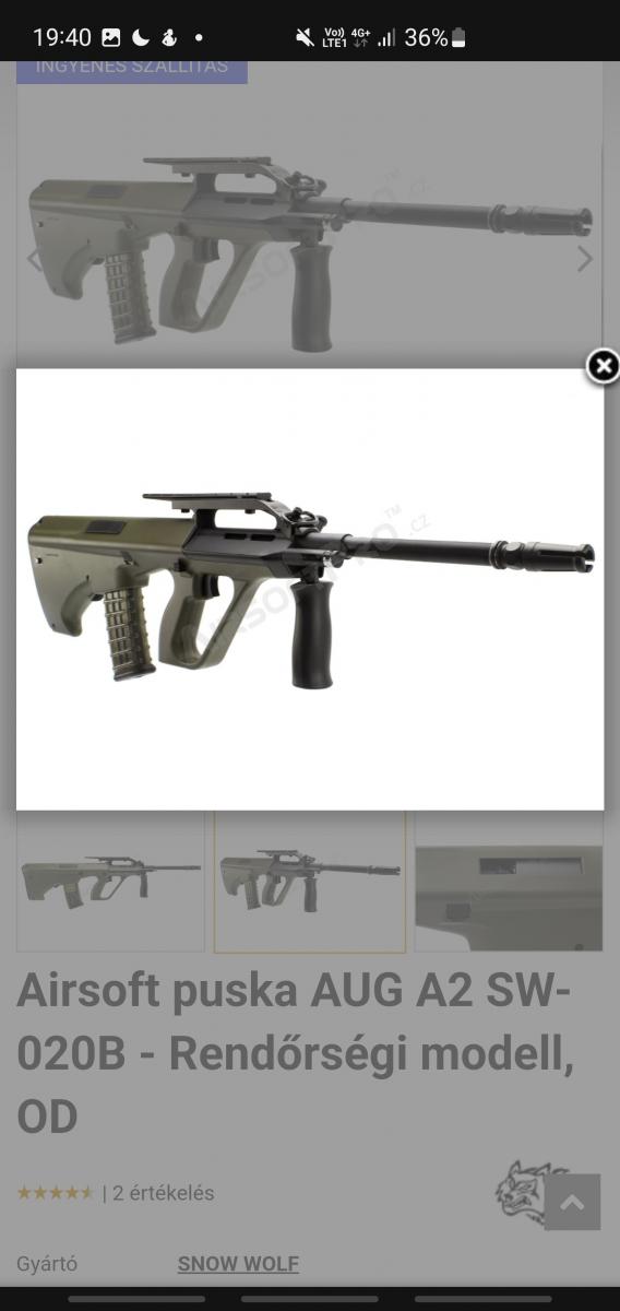 Sziasztok eladó egy Aug A2 Snow Wolf elektromos Airsoft replika.Jár hozzá aksi plusz 4 midcap tár .Ár 60000Ft plusz szálitási költség .Személyesen Kiskunfélegyháza minden más esetben futáral tudom küldeni.2x használt fegyver váltás miatt eladó.Gyári álapot hibátlan.