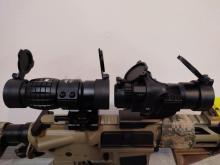 Kihajtható kialakítás, így red dot mögé felszerelve használva váltható 1X és 3X közt a nagyítás.