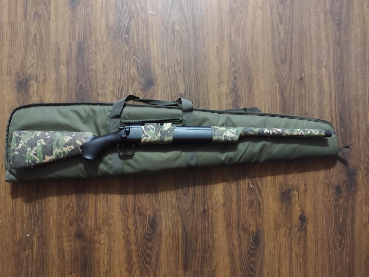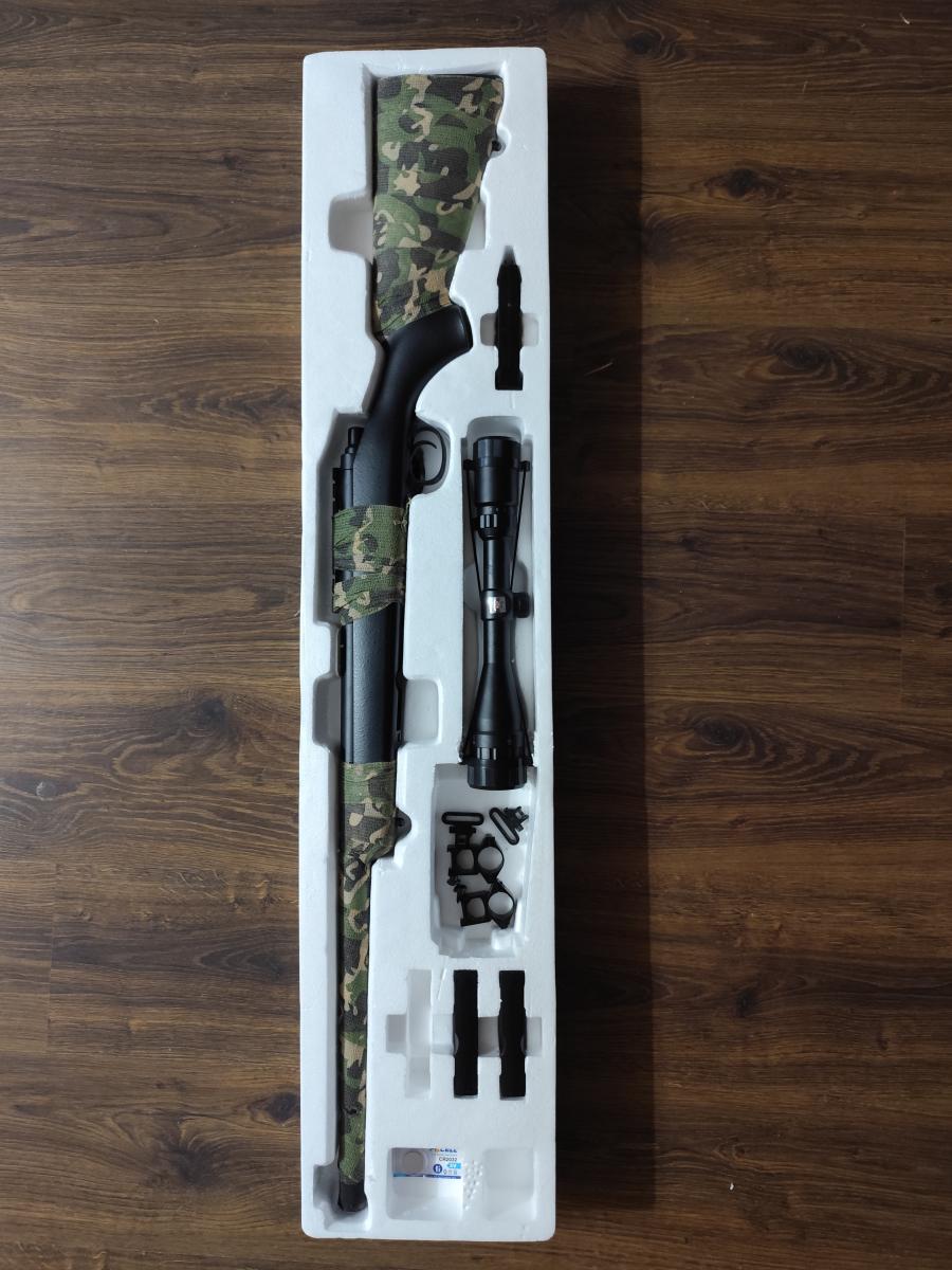Kívül kapott egy szíjakasztót, terep mintás bandázsolást, belseje gyári. Jár hozzá a gyári doboza 2db fém tár (kb 30bb kapacitású), gyorstöltő, valamint egy távcső: Theta Optics 3-9x nagyítás 40mm piros-zöld 5 fokozatú szálkereszt megvílágítás. Kb 400 fps, rengeteg tuningalkatrész beszerezhető hozzá. (ÚJ ÁRAK: puska 45 000, távcső 25 000, szíjakasztó 5 000, tok 9 000)