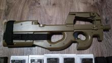 Eladóvá teszem FN Herstal markingos P90-esemet, a képen látható tartozékokkal, ritkának mondható homok színben.