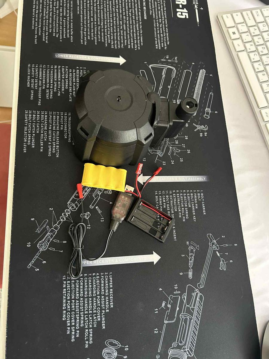ELADÓ – Elektromos Airsoft Dobtár (Drum Mag) + Akkumulátor + Töltő szett