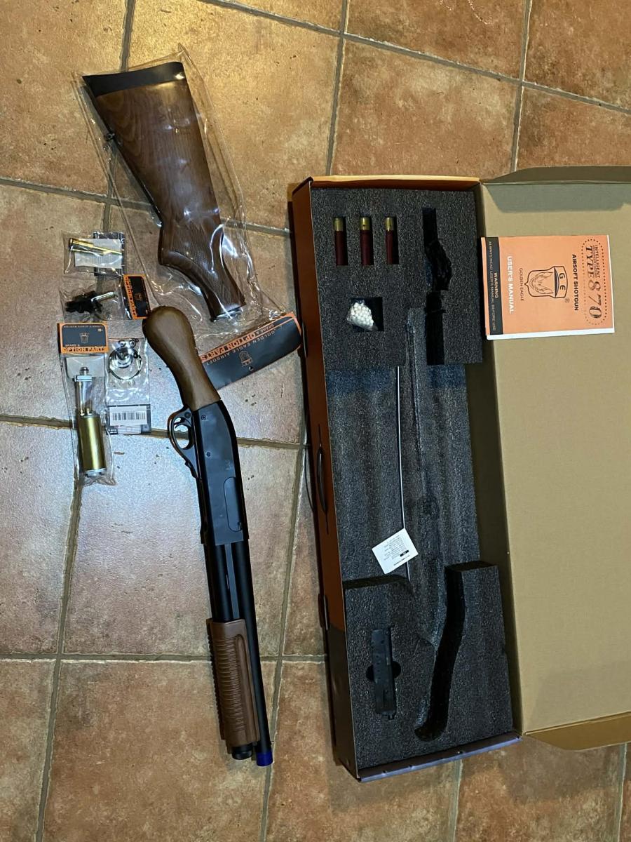 Eladó fa/fém gázos sörétes, soha nem volt használva, a képen látható összes tartozékkal.