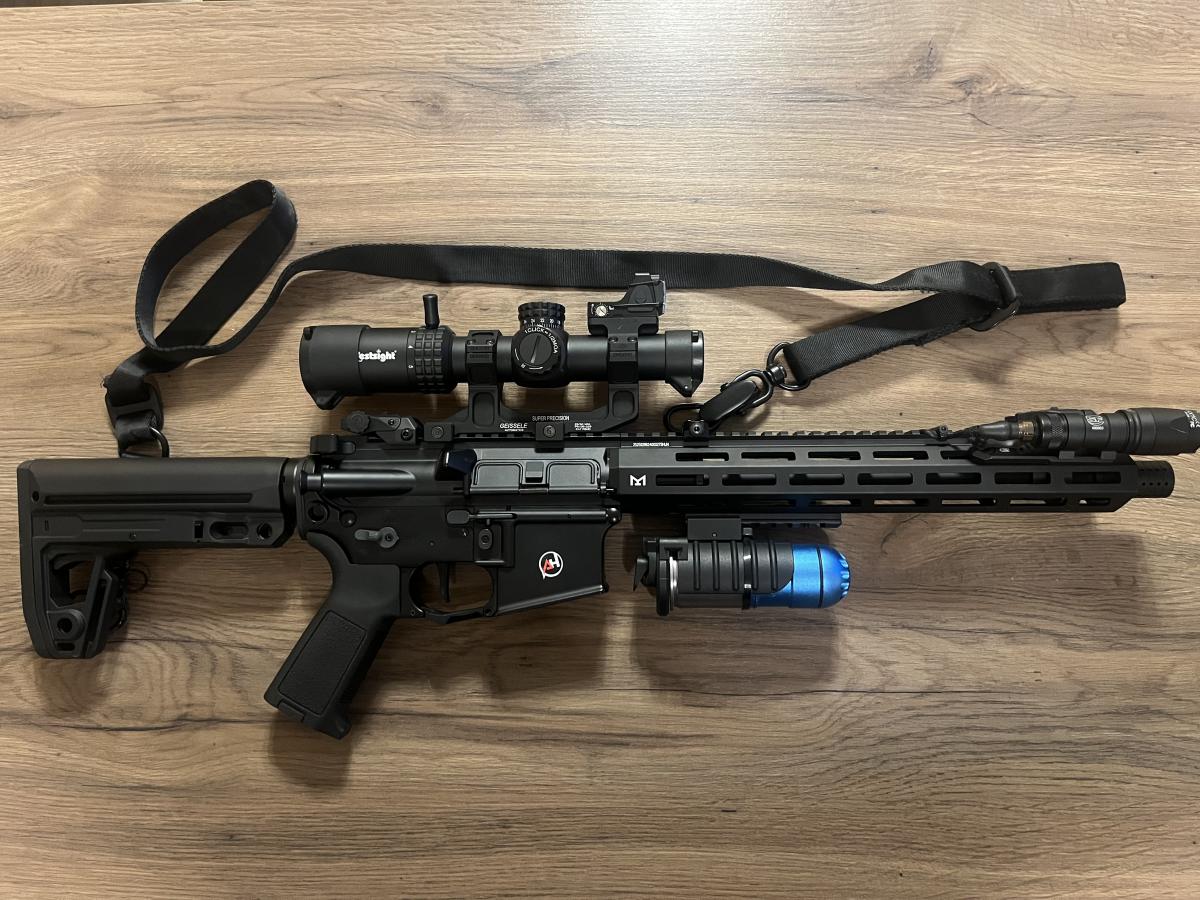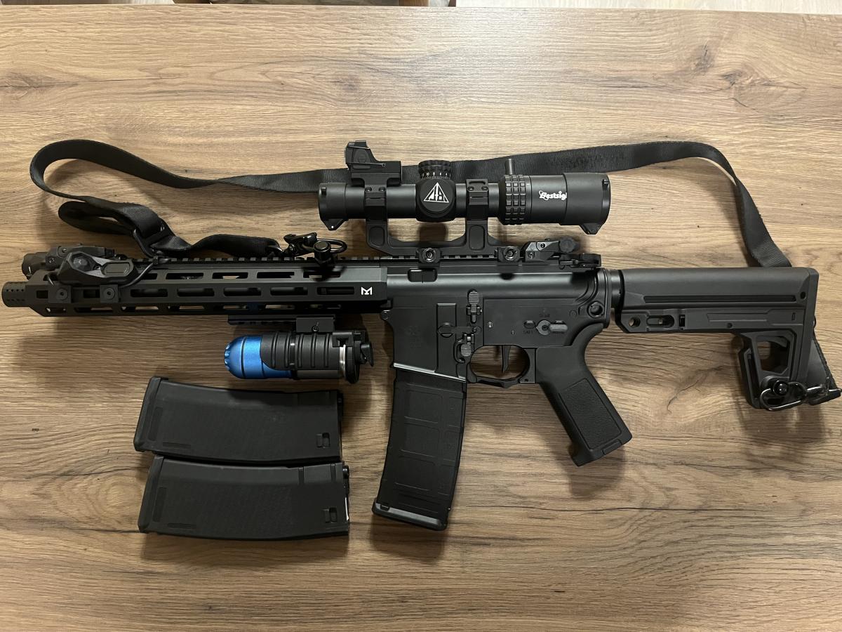 Mindennel együtt ahogy a képen látod.(lpvo mountal (20e)reddottal,(15ezer) lámpaszettel,(14e) 40mm gránátvetővel(12e) gránáttal(3e) qd sling mountal szlingel,(3e) meg a fenti tartozékokkal. 150.000,- huf de lehet csemegézni variálni ha valami kell de valami meg nem.