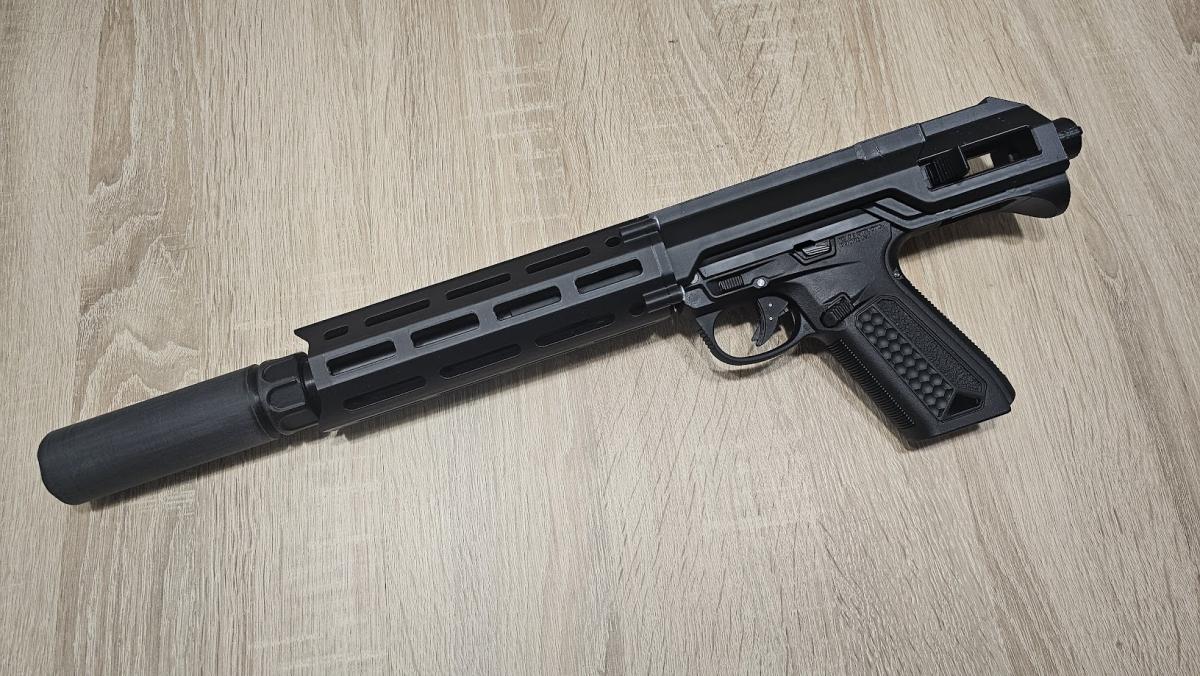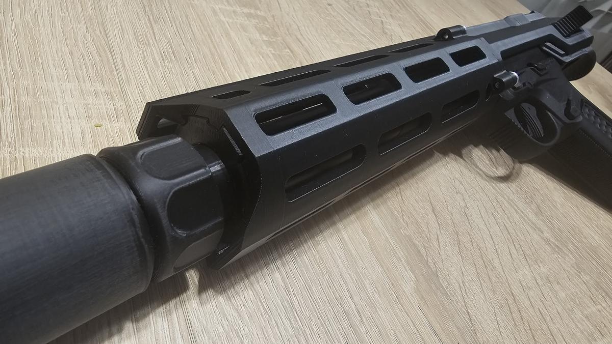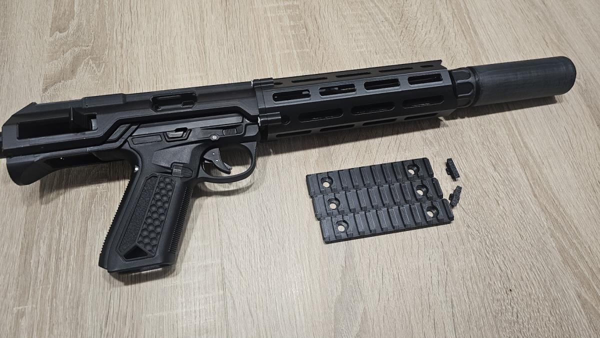 3 fő részből áll, előagy 7", upper, stock adapter (M4/AR) ezenkívül van egy külső cső hosszabbító, egy cső központosító, 3 rail....