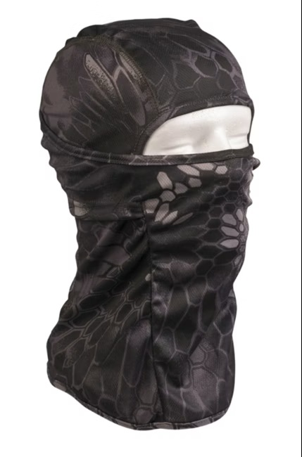„A Mil-tec Tactical csuklyának 1 nyílása és univerzális nagysága van. 100% poliészter anyagból készült. A csuklya szellőző és könnyű anyagból készült, amely biztosítja a jobb illeszkedését a fejhez és az arcrész szigetelését. Viselheti önállóan vagy sisak alá. Álcáz és védi a nyakat és a fejet, az arcrészt is beleértve. Alacsony súly, csak 80 g”