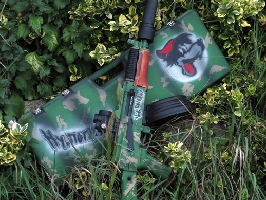 Az ötlet pár hónapja ugrott ki a fejemből ,megálmodtam megépítettem mindent amit szerettem volna beszereztem hozzá .A táska és a puska No, megállj csak! Ruszki rajzfilm ihlette, kb 80 -90 évekbe fejezve Kzs camouflage dekorral. Minden lelett homok szórva alapozva és felépítve minden réteg. A táskén a csattok lecserélve rugós béka zárakra (lakatolható ) szivacs a belsöjében .A puska nagyobb falat volt sok apró hibája volt de mind orvosolva lett csere vagy újra építés útján. A stukker kapott új 6.03 rozsdamentescsövet egy elemet kamrát egy medbul gumit .A gb felújítva fémfaogas rövid löketű dugóval, egy alu nózival, és egy dugófejjel. Ha jól emlékszem 13,1 fogaskerekekkel illetve egy nagy nyomatékú motorral lett felszerelve .Van benne egy fet igy bátran lehet 11 v kasival hajtani. Igy a cuc gyors és pontos lett 60 m simán viszi pontosan. Ami jár a szetthez egy táska egy dobtár (aksis ) és maga puska tompítóval .Cserét talán ,beszámítás van posta szintén ha kérdésed van irj vagy telefonálj .Minden kérdésre válaszolok .