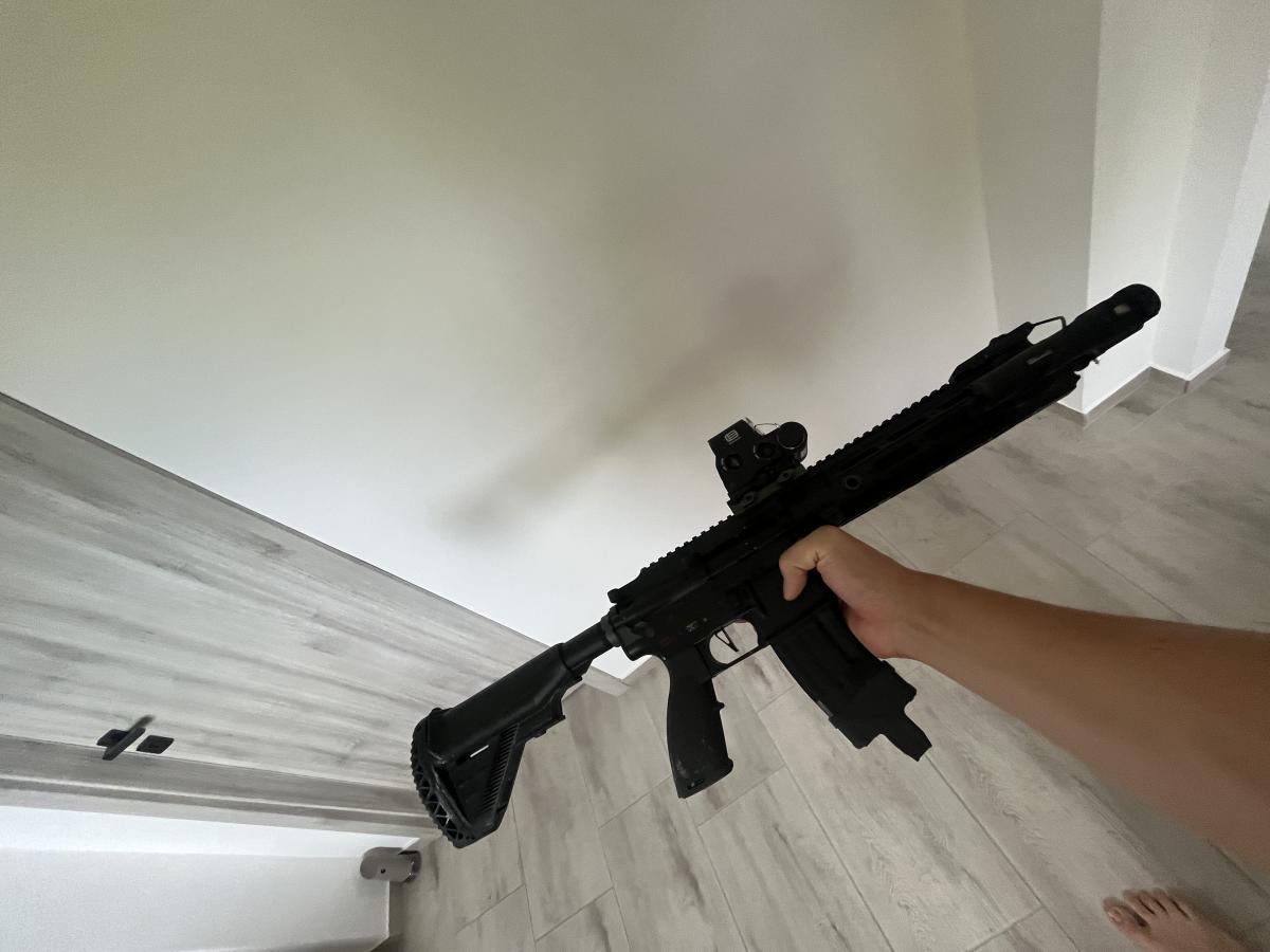 csomag tartalma: gate aster hozzá a programozó egység és a quantum trigger, specna arms brusshles motor 27k, maxx pro hop kamra r hop rendszerrel, shs gearsett es tappet plate, m150 es rugó és rugófeszítő. A replika most esett át egy szervízen ahol lett cserélve: nozzlet és hengerfejet. Jelenleg 350fpst és 1,2 joulet tud 0,20 al ami egy 0.32 vel 278-80 kozott mozog stabilan ami az rhopnak és a maxx pronak köszönhetően olyan 60-70m es relatív lőtávot eredményez ami azt jelenti hog 40-50m en tökéletes pontossággal lehet szedegetni. A dsg szetupnak köszönhetően eszméletlen gyorsan is akár nagyon érzékeny elsüléssel lehet aprítani vele. A test nem lötyög nem zörög stabil mint az állat csak egy picit nehéz. Adok mellé 2db közepes állapotban lévő 11.1v lipo akksit is. Illetve adok hozzá egy gyári dummy supressort is.