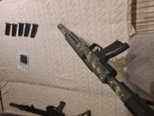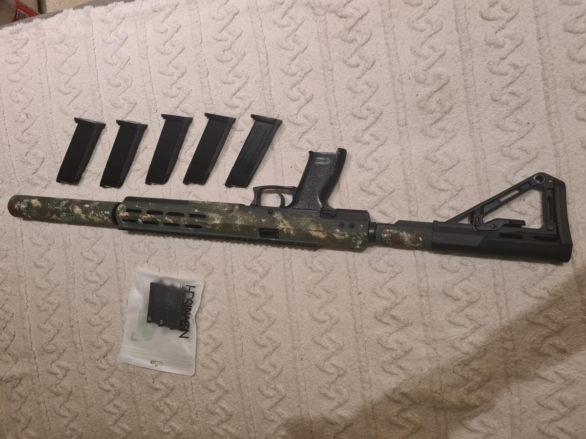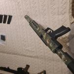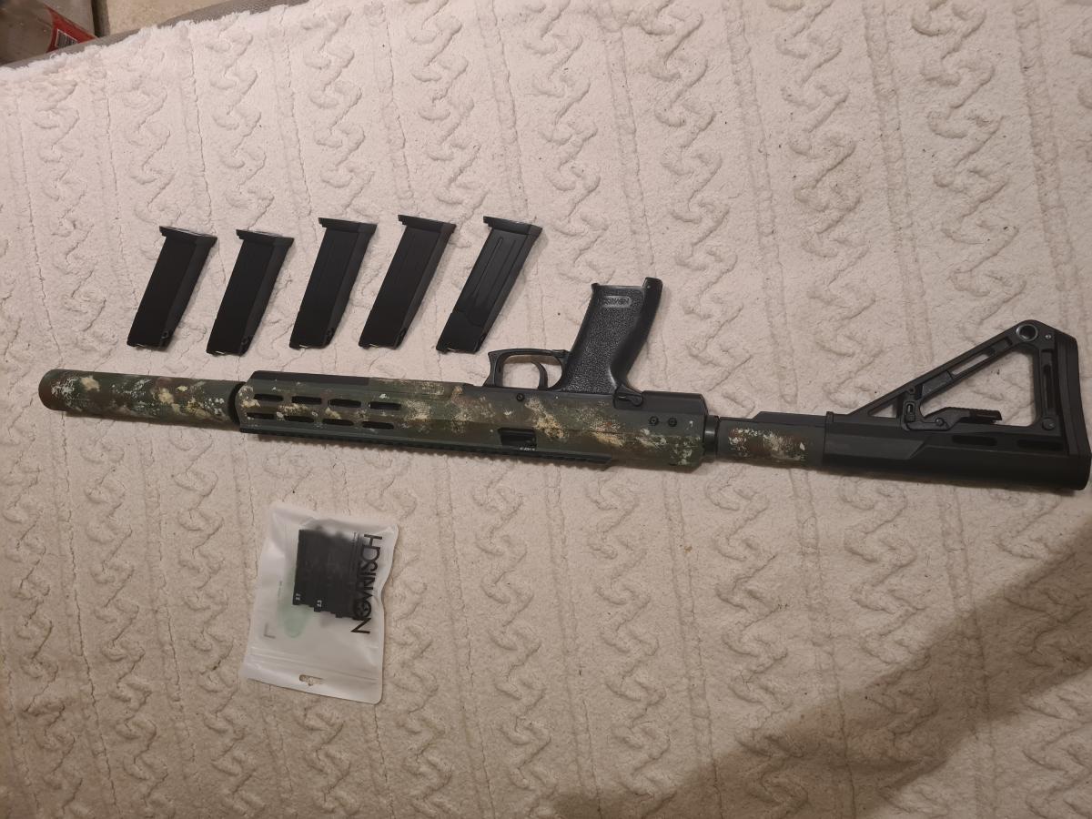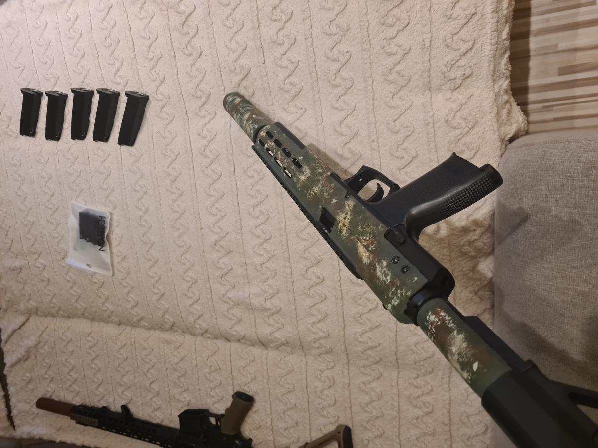 A fegyver tape szalaggal ragasztva és az van festve.. a tape szalag eltávolítása után a fegyver full fekete.