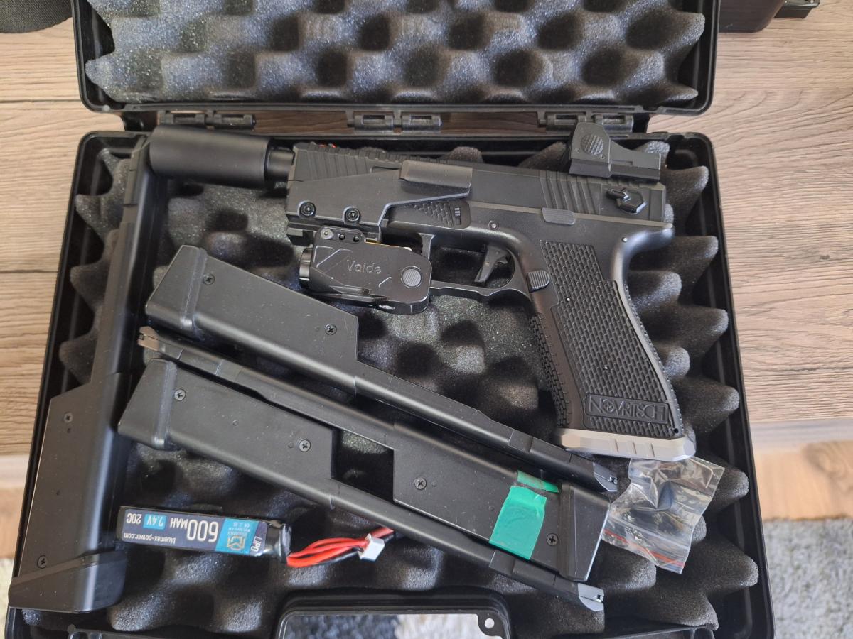 Üdv!Eladó címben említett AEPem.Működni működik szépen, bár egy hopup gumi csere lehet ráférne már.Néha nehezen veszi fel a BBket.Jár hozzá a kis műanyag koffer, az övön való hordáshoz az adapter kompletten, 4 db tár, aksi, reddot, traceres hangtompító(kicsit ez viseletes, de működik) A Fegyverlámpa NEM jár hozzá csak.