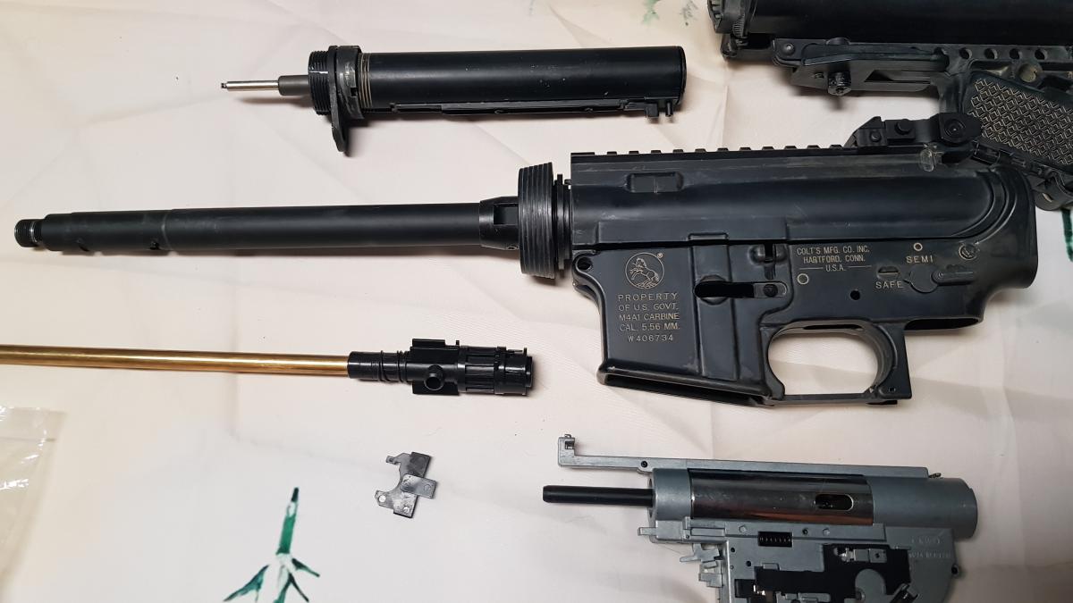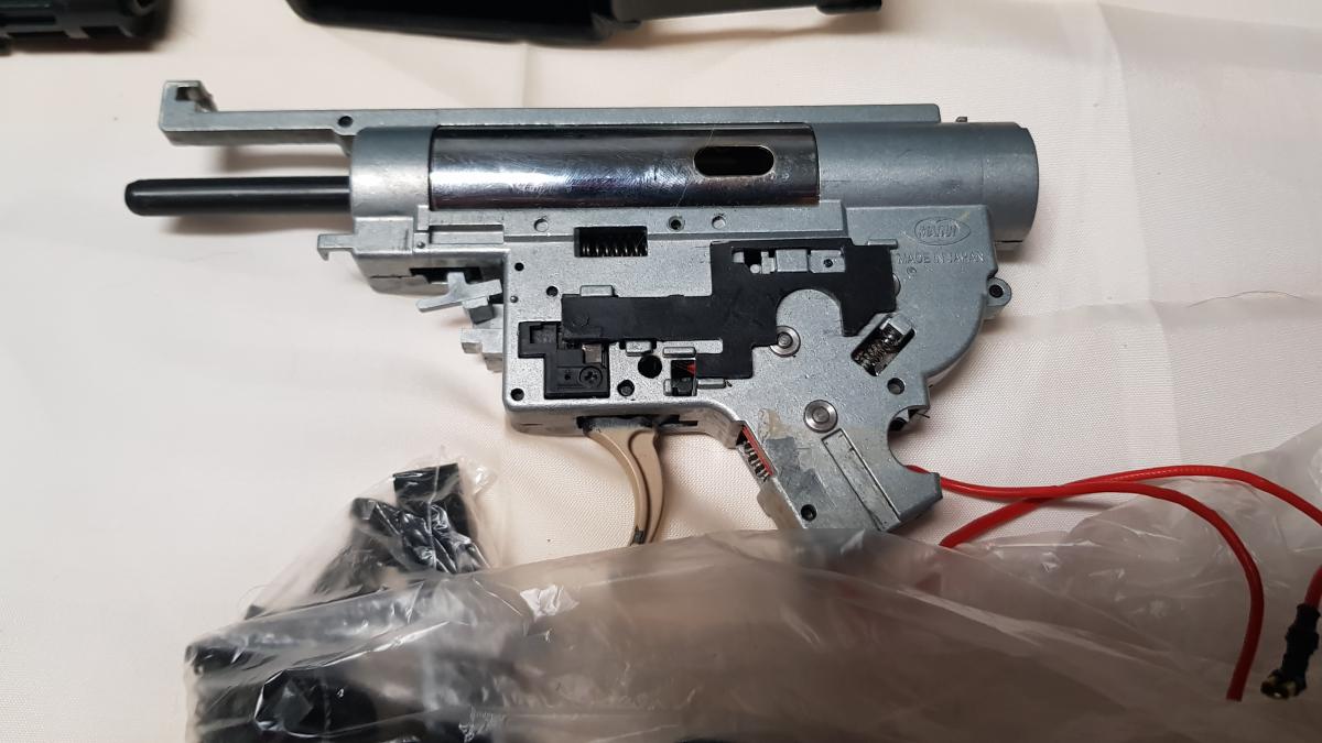 Test, külső cső, gearbox benne a tűzkaocsolóval és gyári fogaskerekek, henger, hengerfej, nozi, adagoló lap. Minden mütyűr meg van hozzá ami a blowbackhez kell. A tuscsőben lévő csavarok menetei ki vannak szaladva és letörve.