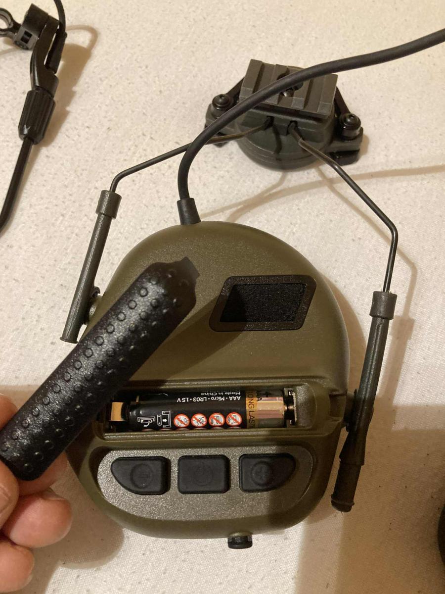 - A headset aktív zajszűrős. A fülesen kívül lévő 2 kis mikrofon beengedi azokat a hangokat, amik "hasznosak. Azaz nem vagy full süket benne, hanem azt is hallod ha beszél hozzád valaki rádió nélkül. Ehhez mindössze 2db AAA elemre van szükség, mint a képen látszik. Az aktív szűrőt a középső gombbal tudod bekapcsolni.