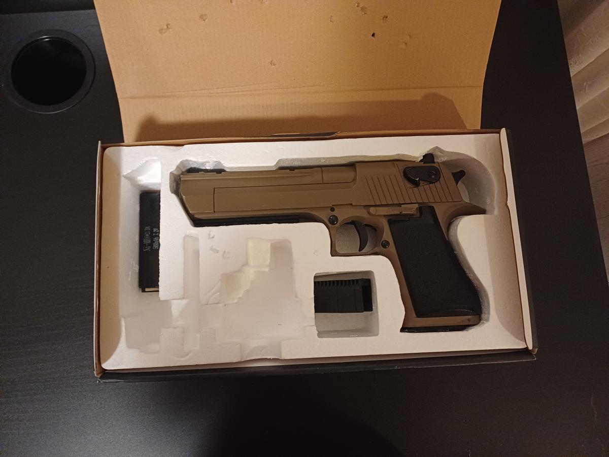 Sziasztok, sport abbahagyás miatt eladóvá vált a CYMA Desert Eagle airsoft elektromos pisztolyom. A replika elektromos meghajtású AEP/AEG, nem gázzal működik, így stabilan, hidegben is jól lő. A fegyver masszív felépítésű, fém és ABS elemekkel, állítható hop‑up rendszerrel és egyaránt képes egy‑ és sorozatlövésre.