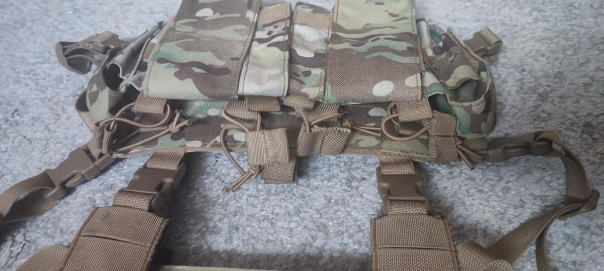 A rig elvisz 4+2 STANAG tárat (4 darab a QR részen, 2 darab a tépőzáras zsebben), illetve 4db pisztolytártartót.Én főleg a gyorstöltőt és a sportszeletet tároltam ott.
