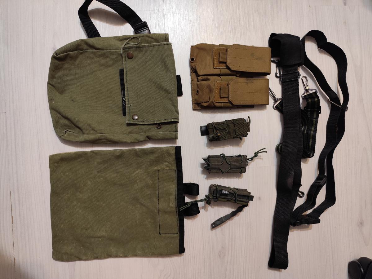 Eladóak a képen látható zsebek, tárdobók és egyéb felszerelések.