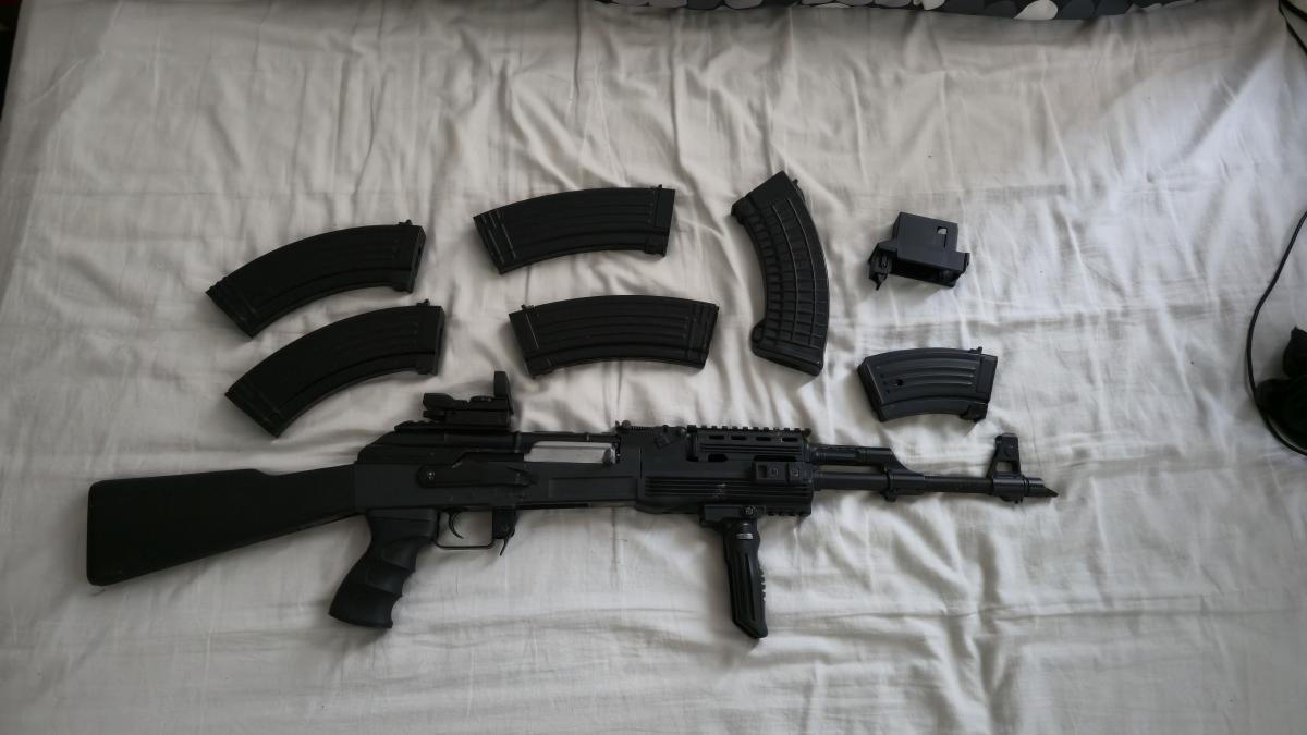Eladó egy jó állapotú Cyma AK. Az eredeti tus letört róla ezért kapott egy fémet es fix tust. Hopup gumi cserélve ML60-as ra. 110 es rugóval ~1.3J. Adok hozzá 4 midcap tárat, 1 kicsi es egy nagy highcap tárat. Reddot jár vele ami rajta van. Tamiya csatlakozós, 7.4 es aksival használtam.