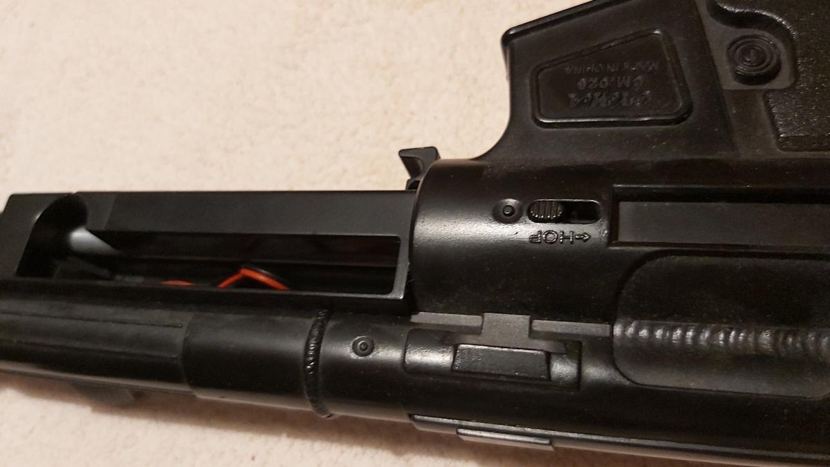 Van rajta heveder tartó és egy dísz felhúzó kar, ami semmire se jó, csak ott van egy rugóval, hogy hasonlítson a valódira.
