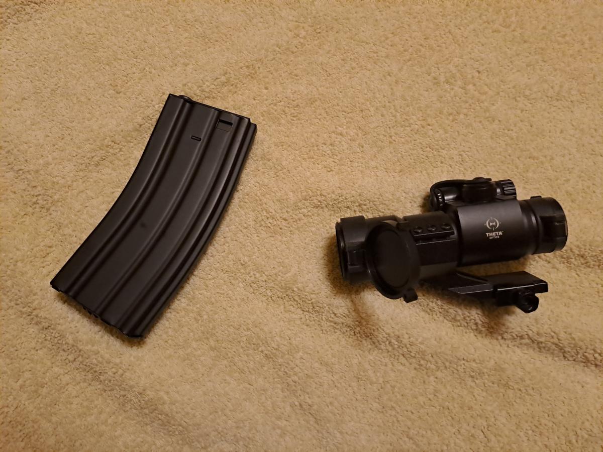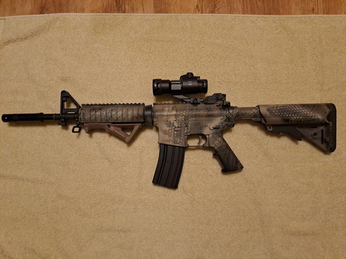 Kihasználatlanság miatt eladóvá vált szeretett M4-em. Nagyjából egy éve van meg, de sose volt semmi baja. Egyedül a rugó lett benne kicserélve, most egy 120m/s erősségű van benne, de a korábbi 100-asat is adom mellé. A külső cső meg van hosszabbítva, illetva a kézvédő két oldalán borítópanelek, az alján pedig egy háromszög fogantyú található. Fix tüskés irányzék van rajta, a képeken látható reddotot további 16.000ft-ért adom hozzá (2 szín 5erősség). A 300-as fém hi-cap tár és egy fekete heveder a fegyverhez jár. A legjobban 0.20 vagy 0.25-ös BB-vel működik, és 6.03-as precíziós cső van benne. Hossza a válltámasszal 80 és 86cm között állítható.