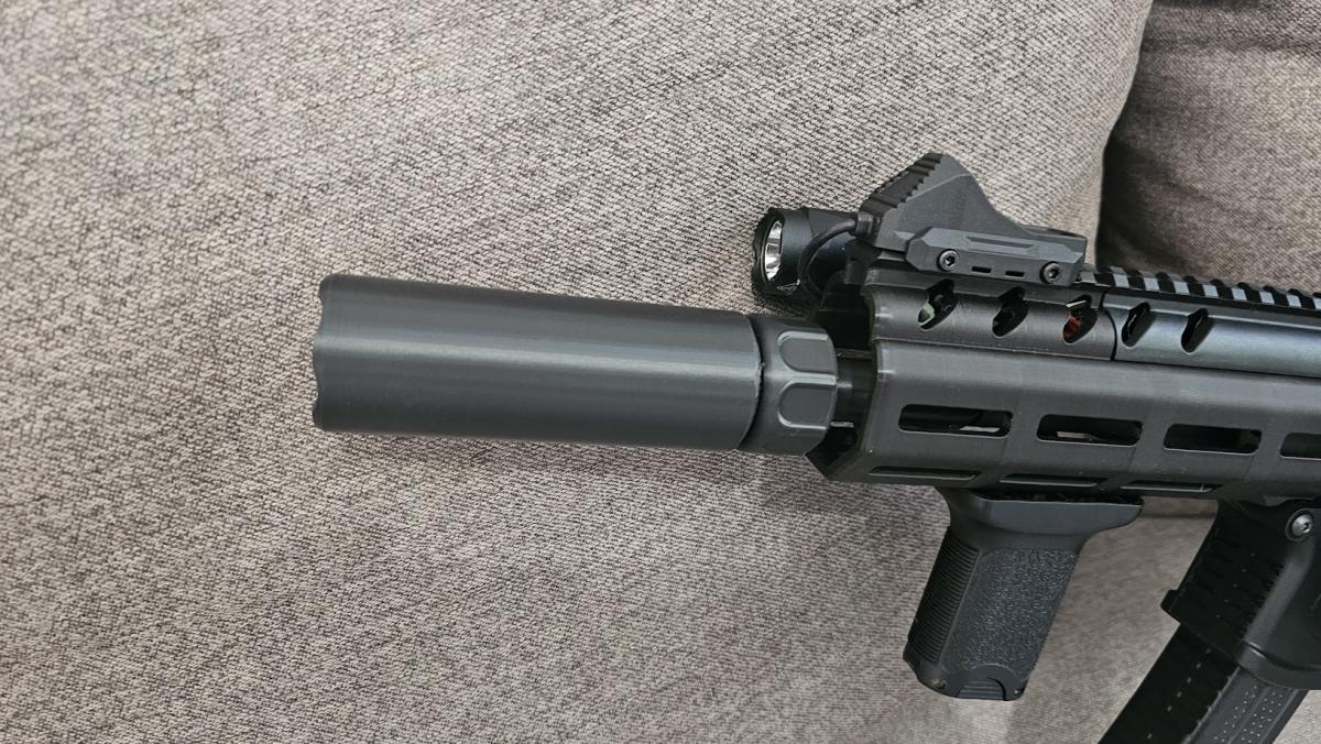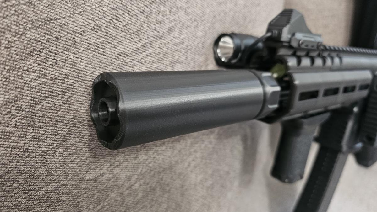 3D nyomtatott 14 mm ccw menettel. Tömör, hosszabbbelsőcső elrejtésre optikai tuningnak tökéletes. PLA-ból 50%-os kitöltéssel készült, 37mm átmérőjű