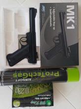 Asg mk1 green gas pisztoly. Csak hobbylövészetre volt használva. Gázból nem sok hiányzik, kb 800db 0.23 bb vel.