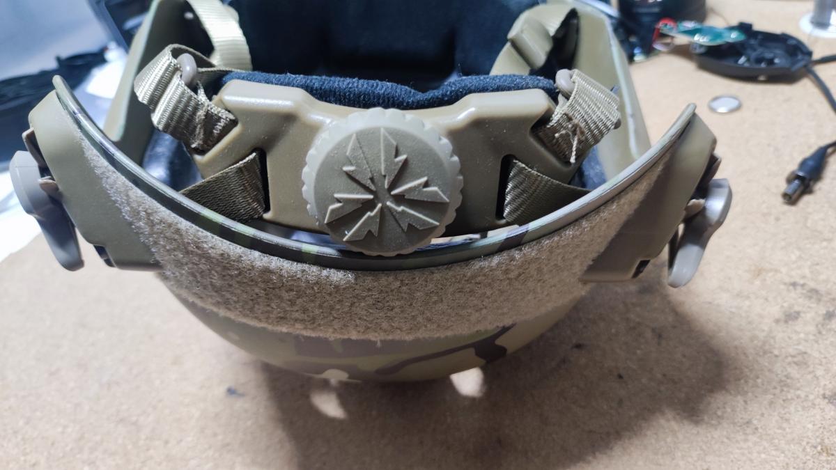 Gyárilag szinezett multicam sisak, tekerhető méret állítóval.