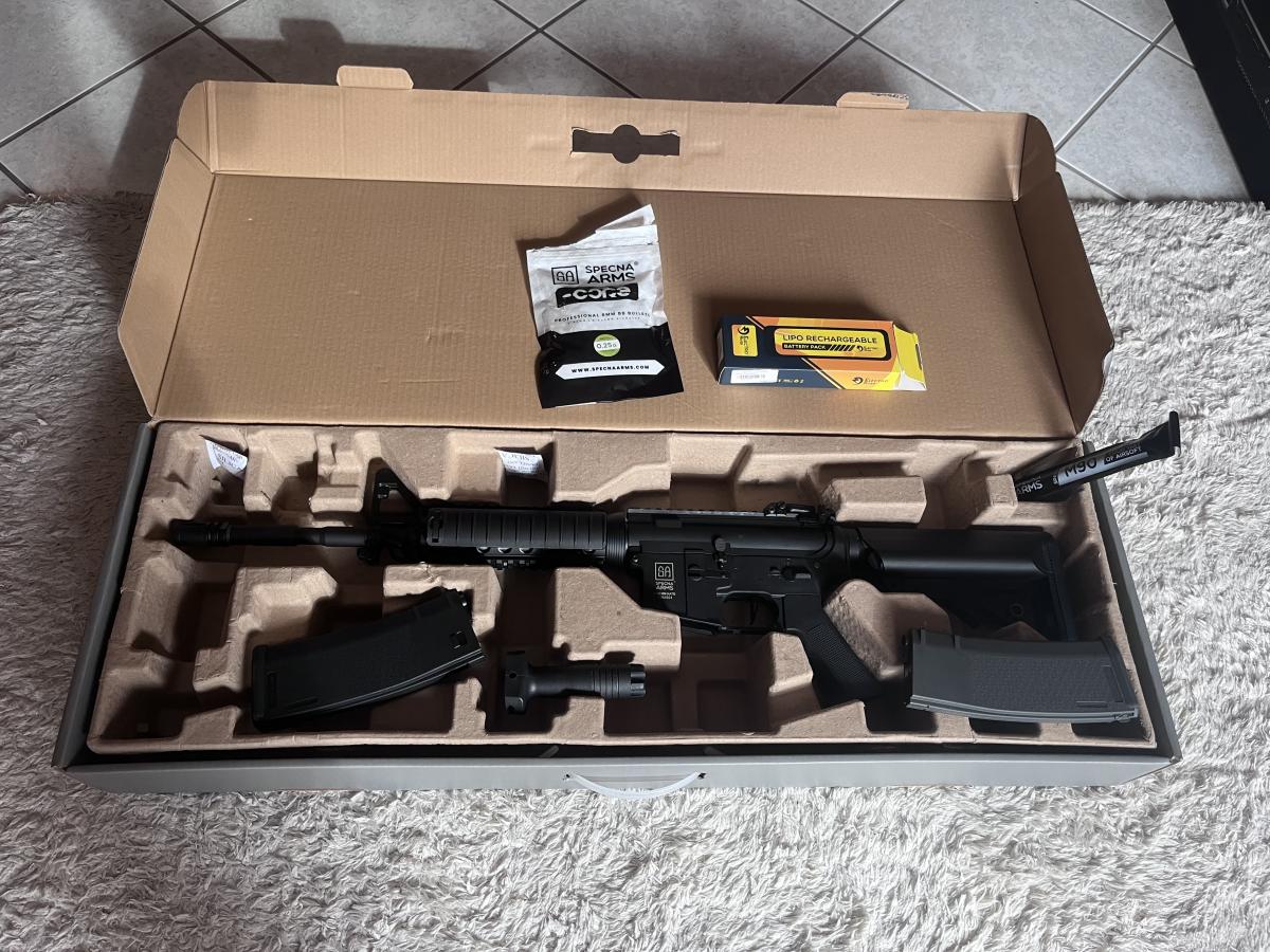 Fegyverhez a gyári tartozékai járnak: front grip, tartalék rugó (cqb), hicap tár, 0.25 bio bb