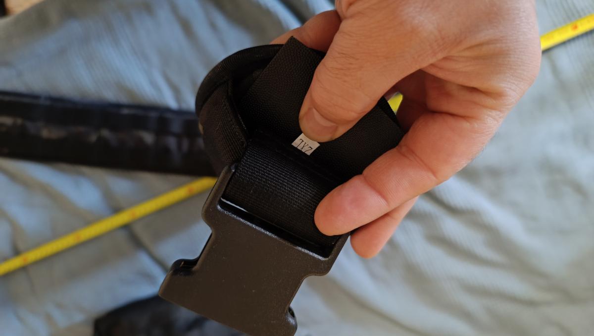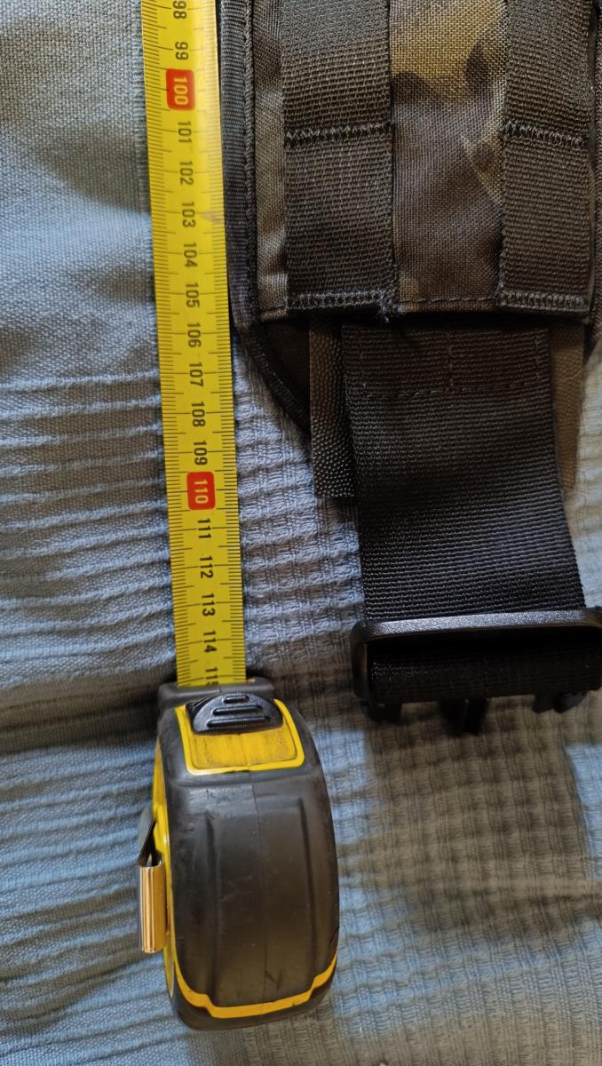 A taktikai öv XXL-es méretű, kihúztam mellé egy mérőszalagot amin jól látszik hogy a ~114cm-121cm derékbőségre állítható be.