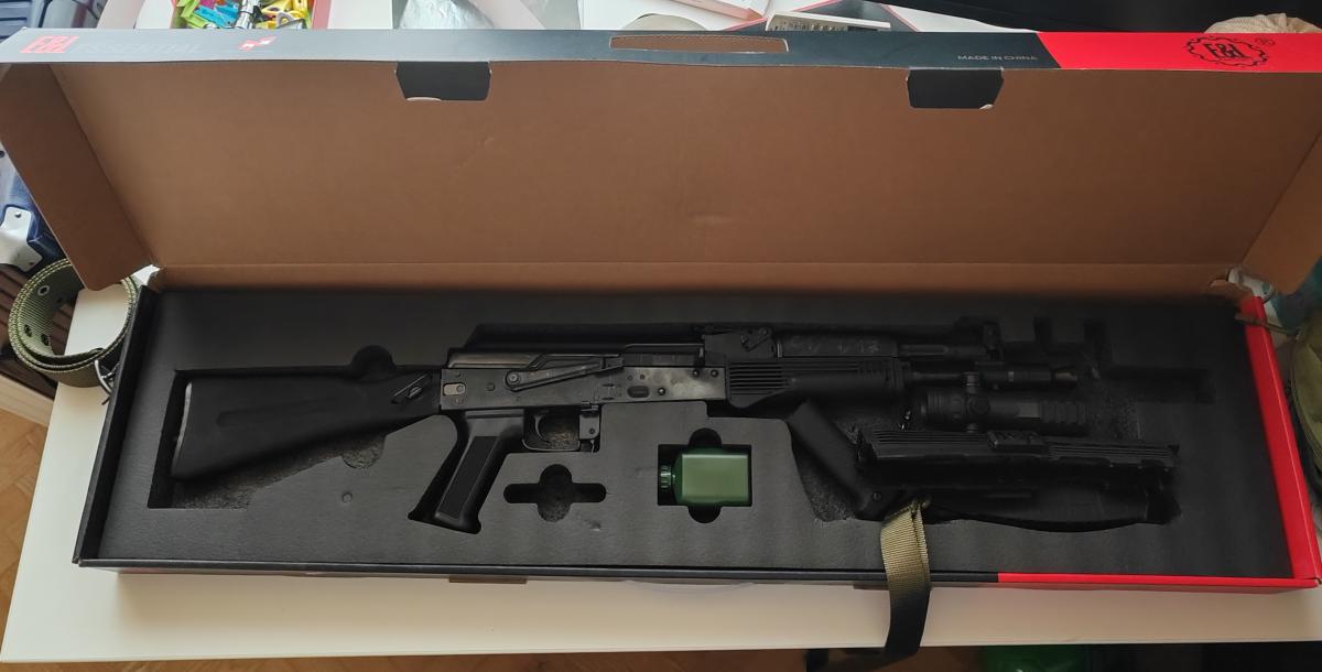 1 E&L midcap van hozzá, sínes handguard, grip és ACOG (red dot) ajándék