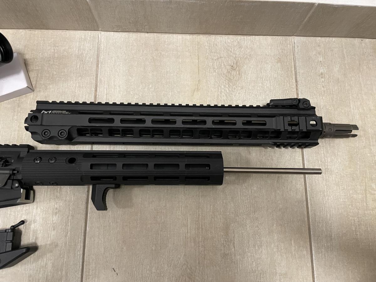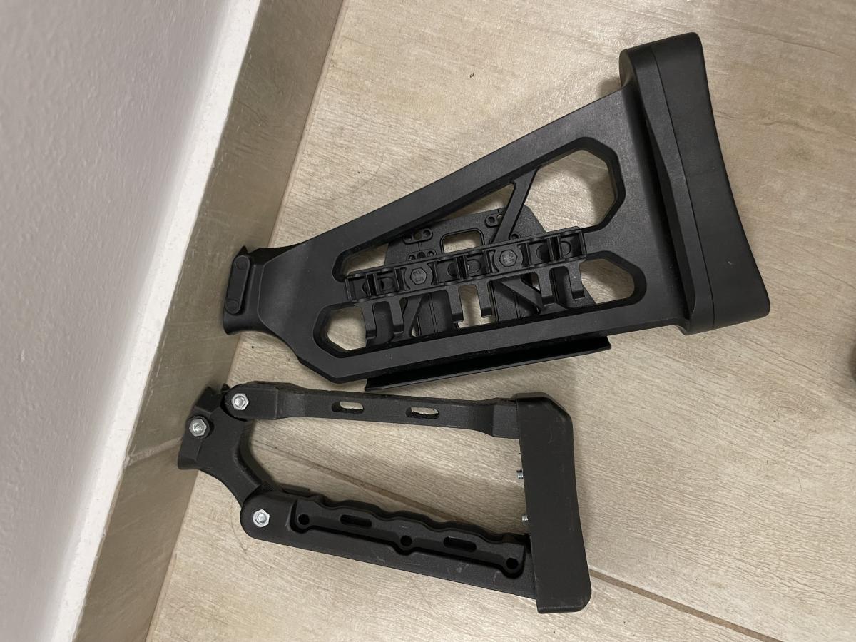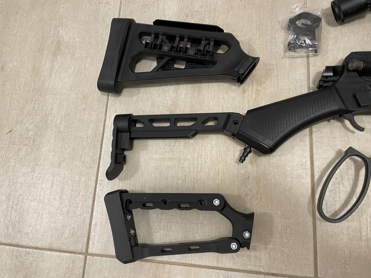 Kívül: shs 10inches előagy, 5ku külsőcső, metal handstop, 3 különböző tus - gyári, 3d nyomtatott rövidített és buffer + gyári előagy és külsőcső, theta optics 3-9x42.