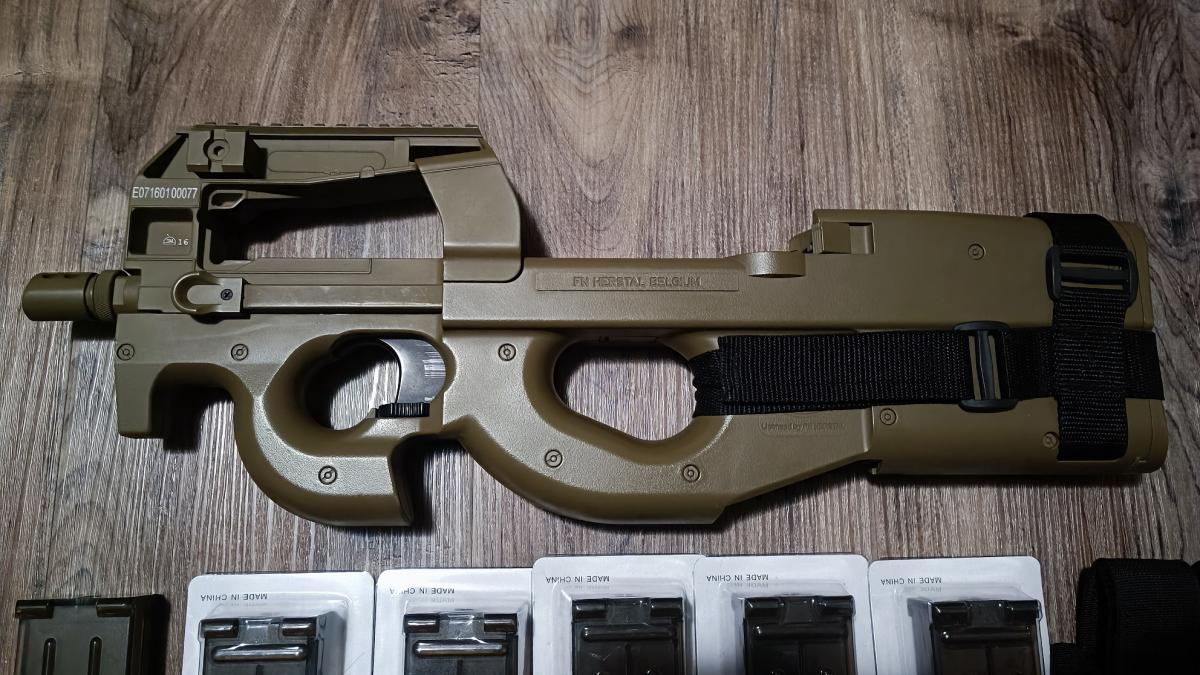 Eladóvá teszem FN Herstal markingos P90-esemet, a képen látható tartozékokkal, ritkának mondható homok színben.