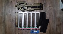 Tárak - 1 ( 1db high cap) kivételével mind mid-cap, tárzsebek, P90 szíjakasztó szintén nem túl gyakori, új fogaskerekek. Minden hozzá jár. Akku és töltő nélkül.