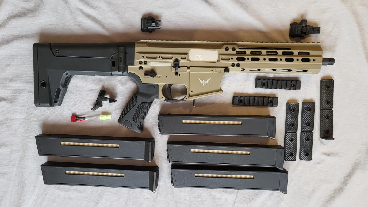 Eladó Double Eagle UTR 45. Egy játékon próbáltam ki, beltéren. Pontos, gyors. Nagyon kényelmes. Tág határokban állítható válltámasz. Jár mellé a gyári mellett +4db tár, szintén DE gyártmány. Tárcsás hop kamra, működő bolt catch, T-csati, kicsi tamiya adapterrel, ha kell. A felhúzó kar mindkét oldalra átszerelhető egy mozdulattal. Helyhiány miatt eladó.