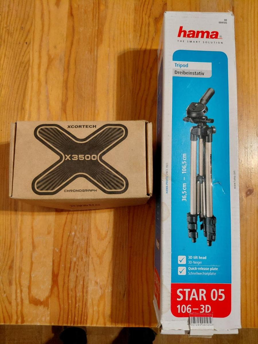 Xcortech X3500 chrono dobozában elemekkel + Hama Star5 tripod dobozában. Hibátlan, sérülésmentes mindkettő.