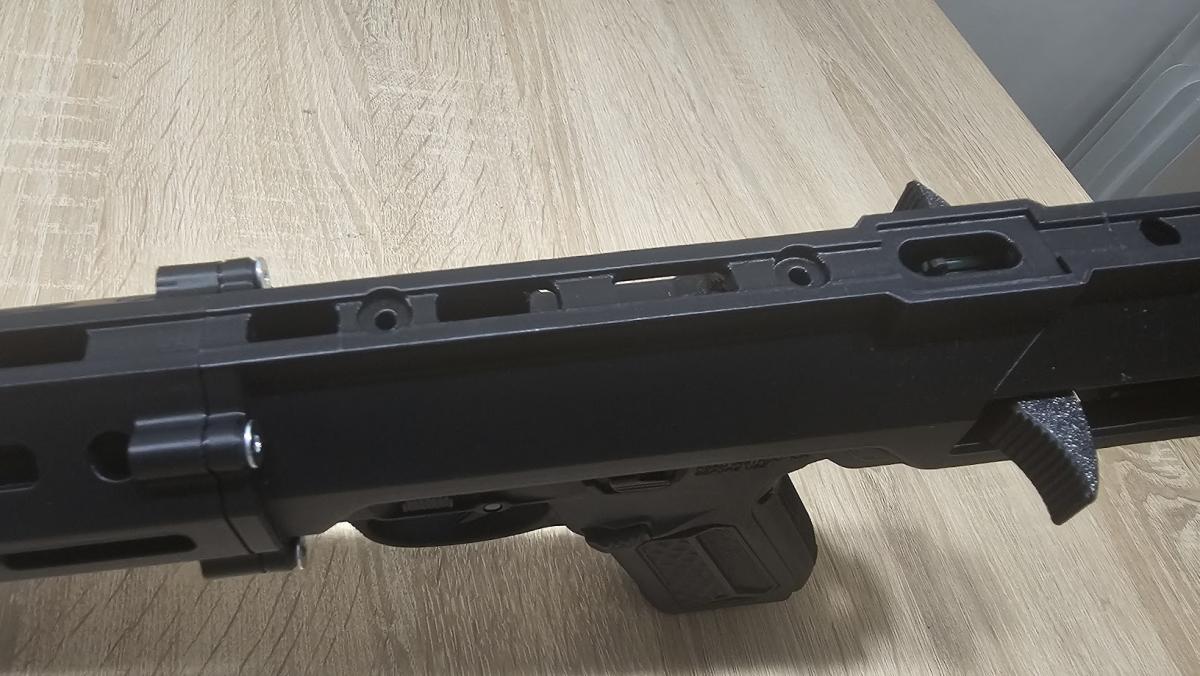 3 fő részből áll, előagy 7", upper, stock adapter (M4/AR) ezenkívül van egy külső cső hosszabbító, egy cső központosító, 3 rail....