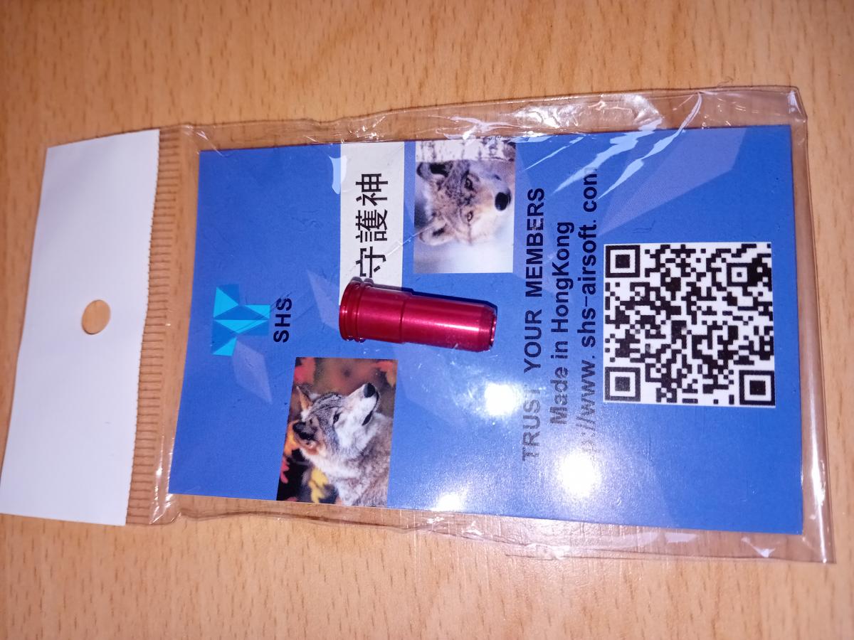 Eladó a képeken látható M4 airsoft AEG replikába való SHS alumínium nozzle, 21,41mm hosszú, gumi O-gyűrűvel.