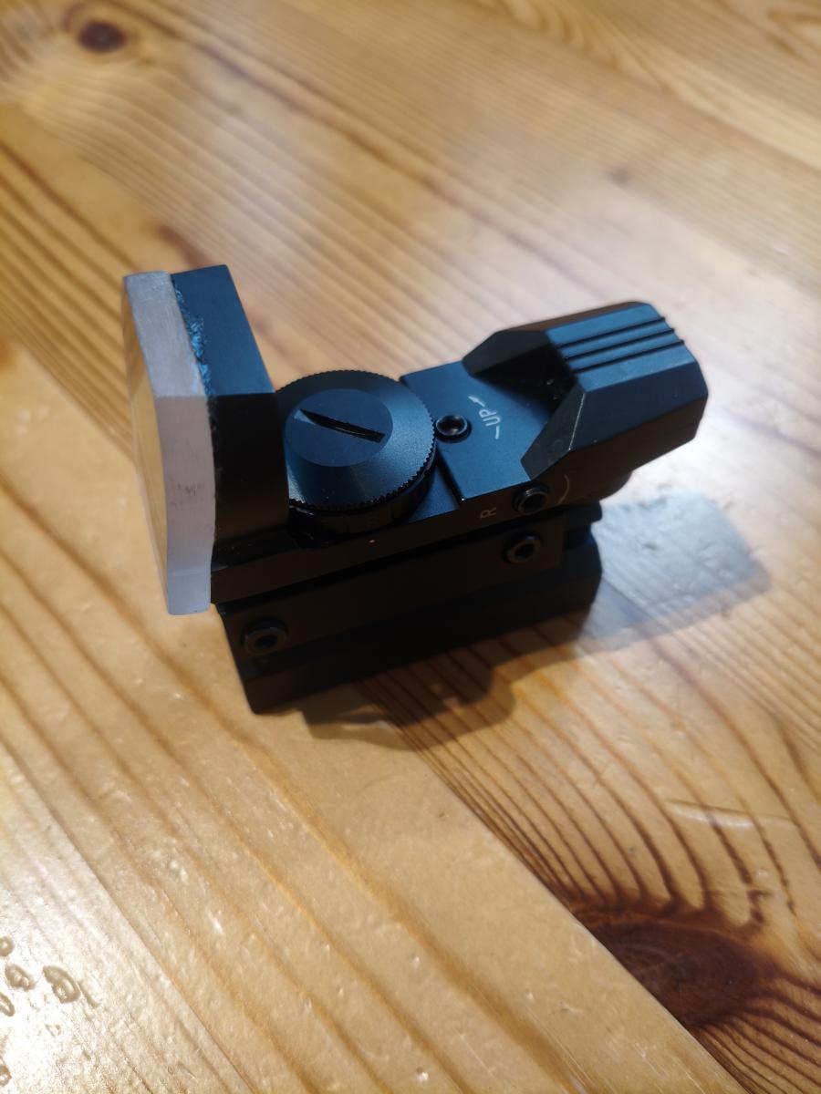 Airsoft leépítése miatt eladóvá vált red dotom, sínmagasítóval, törésálló plexivel ami rugalmas ragasztóval van ragasztva.