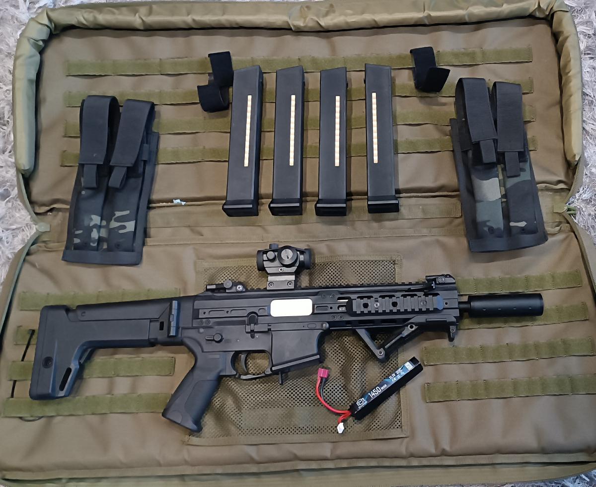 Eladó egy komplett felszerelés. Maga a fegyver uj hop gumival. 4db midcal tárral, ajándék tártartó molle. akksival, micro T1 red/green dottal és fegyver táskával. Maga a fegyver programozható igy brutálisan gyors és személyre szabható amire csak szeretnéd. ( Burst mod, elsütés érzékenység dupla egyes lövés stbstb. Gyári mos csak tárazol és mehet a dara. Kitűnő állapotban. Nézz szét többi hirdetésem között is.